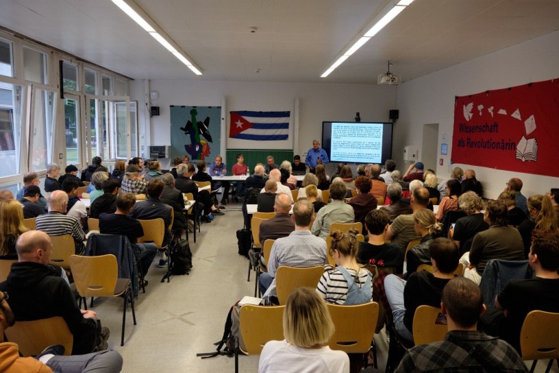 Rigoberto Zarza sprach auch an, dass die extreme wirtschaftliche Krise, die eine Folge der Kombination aus dauerhafter, scharfer Blockade und Pandemie ist, zu Unzufriedenheit führt, die von über die Sozialen Medien verbreiteten Illusionen über das Leben in kapitalistischen Ländern genährt wird. Dagegen wirke aber die inklusive Entwicklung der kubanischen Gesellschaft, die in einem permanenten Prozess der Vertiefung von Errungenschaften, der ökonomisch-sozialen Erneuerung und des Kampfes gegen die Blockade wachse. Deutlich wurde, wie erforderlich es ist, in der EU seitens der Bevölkerungen Druck auf die Regierungen auszuüben, dass diese die Embargo-Politik der USA nicht mehr mitmachen. Auch mehr wissenschaftlicher und Jugendaustausch sollte von Unten initiiert werden, denn es gibt viel voneinander zu lernen.
